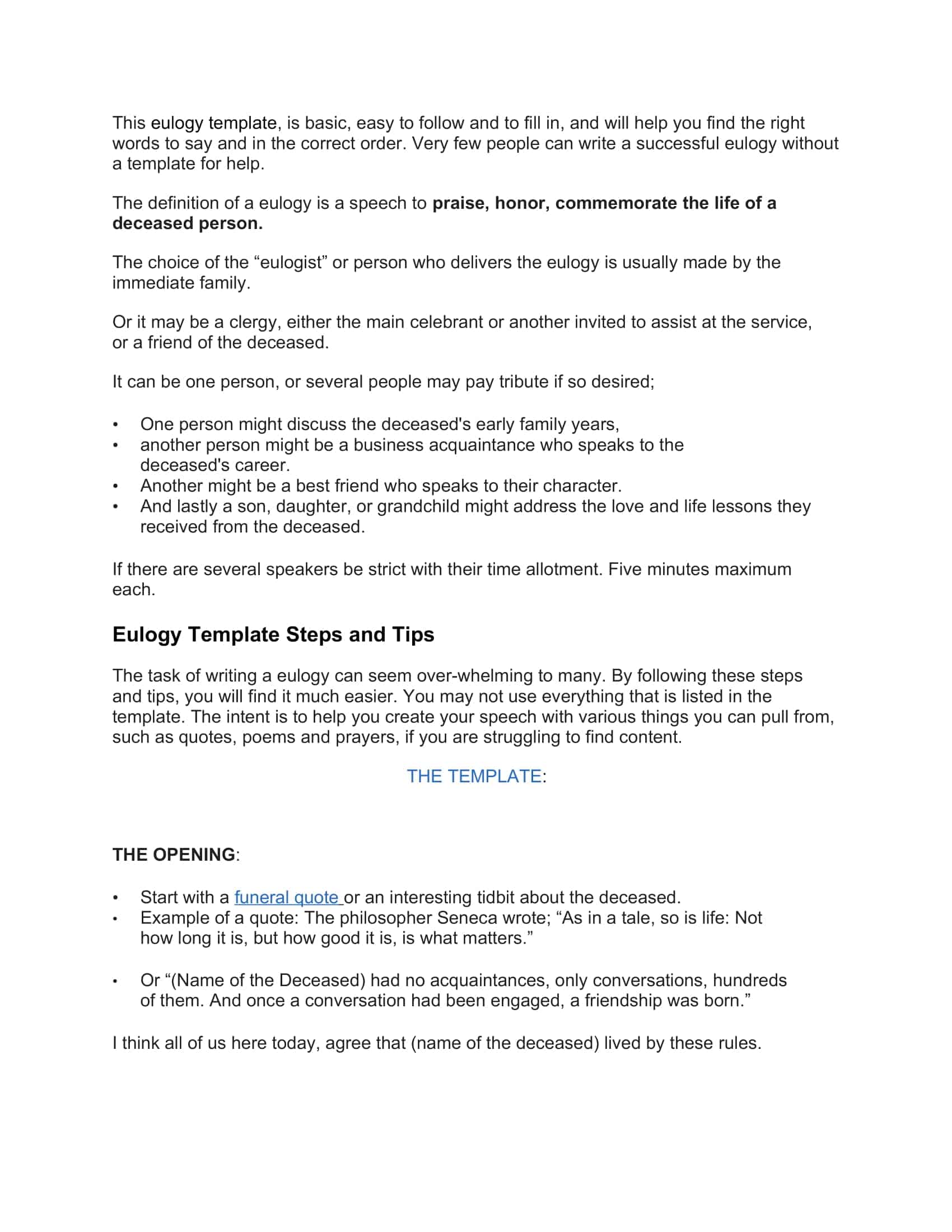 xoirzrnfmw.blogspot.comFree Printable Eulogy Templates [Mother, Father, Friend, Brother
